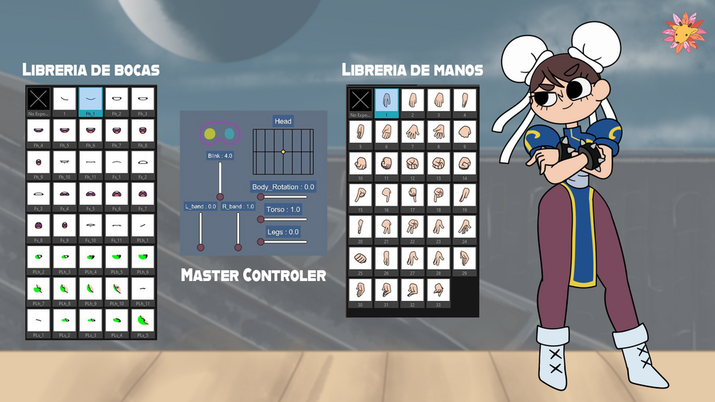 • -Controlador maestro para rotación de cuerpo completo, torso, piernas y cabeza, parpadeos y pose de pulseras