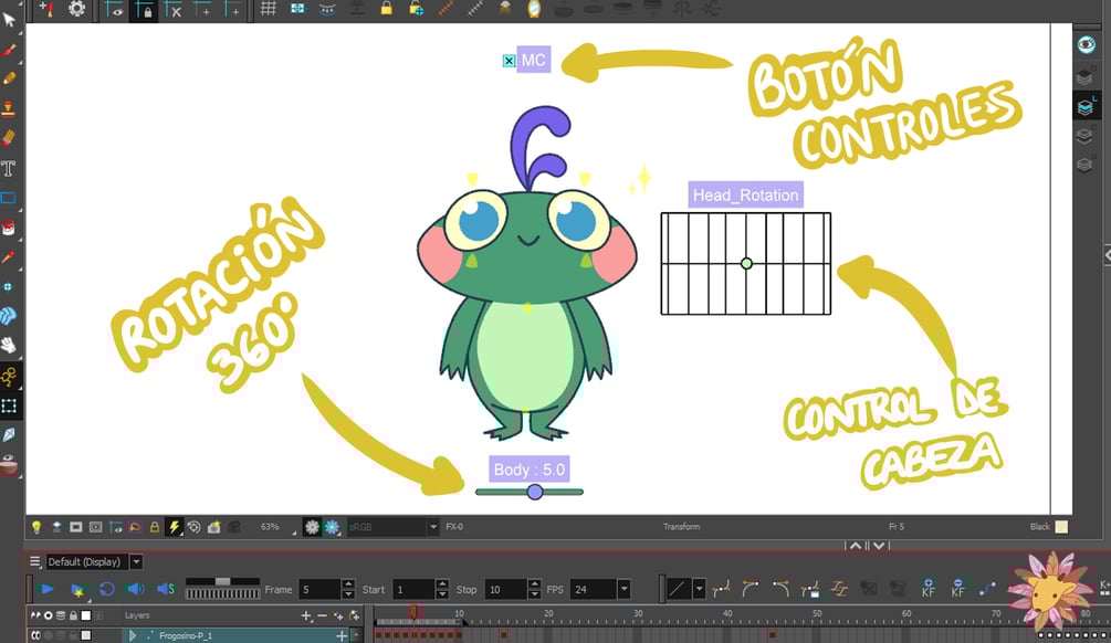 Rig 2D de Frogosin, Rotación 360 con librería de manos, bocas y pies